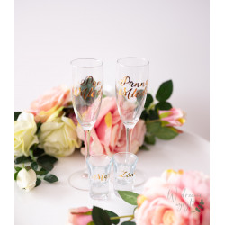Kieliszek do szampana z spersonalizowanym napisem. Doskonały pomysł na prezent dla świadków, druhen, rodziców, pary młodej lub każdej ważnej osoby. Świetnie sprawdzi się jako oryginalny dodatek na stole weselnym.