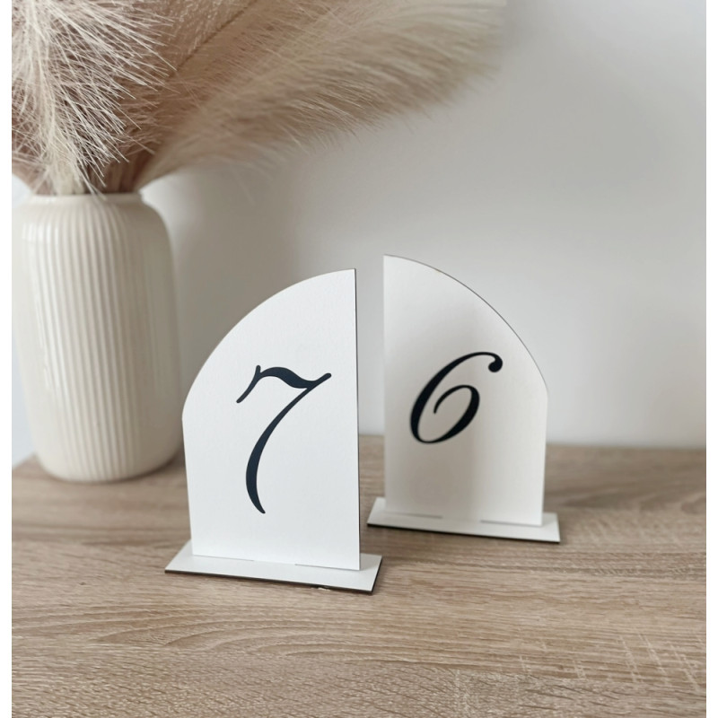 W zestawie podstawka, która pozwala na samodzielne postawienie cyferki na stole.
