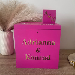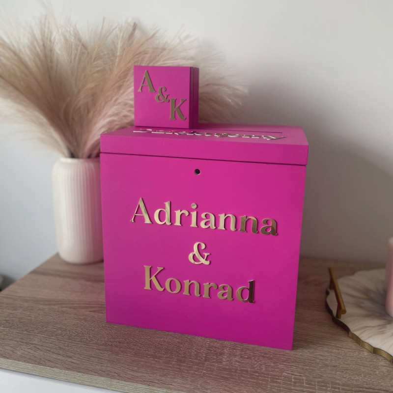 Pudełko na koperty z napisem lustrzanym Fuksja
