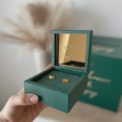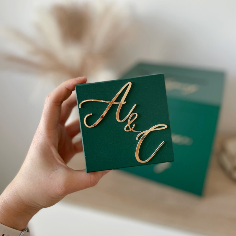 Pudełko na obrączki o wymiarach 10x10cm. Na wieczku pudełka oraz po wewnętrznej stronie może znajdować się napis (UWAGA! tylko jeden wyraz np. miłość), dekor lub inicjały. Jeżeli mają Państwo swój pomysł na to pudełeczko zapraszamy do kontaktu. Istnieje możliwość modyfikacji wypełnienia.