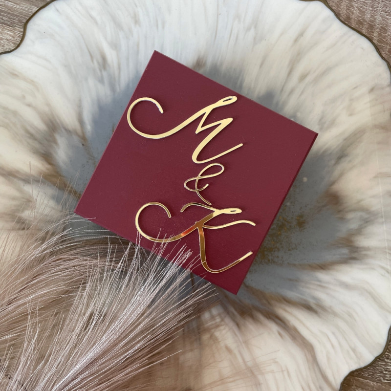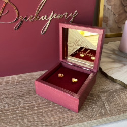 Pudełko na obrączki o wymiarach 10x10cm. Na wieczku pudełka oraz po wewnętrznej stronie może znajdować się napis (UWAGA! tylko jeden wyraz np. miłość), dekor lub inicjały. Jeżeli mają Państwo swój pomysł na to pudełeczko zapraszamy do kontaktu. Istnieje możliwość modyfikacji wypełnienia.