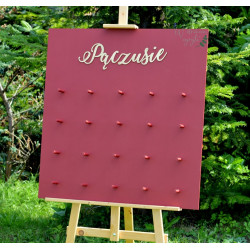 Możliwa dowolna kolorystyka tablicy, podstawowa cena to kolor jasnego drewna. Sama tablica na 20 donatów ma około 74x80cm. Istnieje możliwość dłuższych zawieszek na donaty (np. 2/3 szt). Podana cena dotyczy tylko tablicy, sztalugę można dokupić osobno.