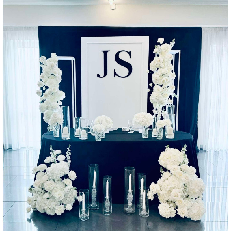 Inicjały dekoracyjne na ściankę prezydialną. Inicjały w kolorze czarnym lub białym. Inicjały są wykonane z cienkie materiału do naklejenia na ściankę, są wykonane z 1 mm materiału, więc nie nadają się do zawieszania, gdyż mogą się wyginać. Wymiar to inicjały w wymiarze max. 30x60 cm (razem obok siebie). Możliwe wykonanie innego wymiaru i czcionki - skontaktuj się z nami