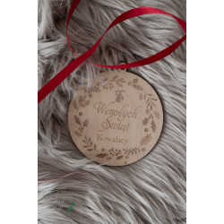 Rozmiar bombki to 10cm wysokości. Wykonana ze sklejki drewnianej 3 mm.
