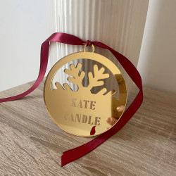 Lustrzana akrylowa bombka z grafiką w kształcie śnieżki. Wyjątkowa i piękna dekoracja z twoim napisem lub logo. Krótkie życzenia, bombka dla babci, dziadka, dziecka, koleżanki z pracy czy twoich klientów. Lustro złote, srebrne lub różowe.