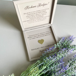 Wyjątkowi goście to wyjątkowe zaproszenie. Eleganckie zaproszenie w pudełku sprawdzi się idealnie na tak wyjątkową okazję.